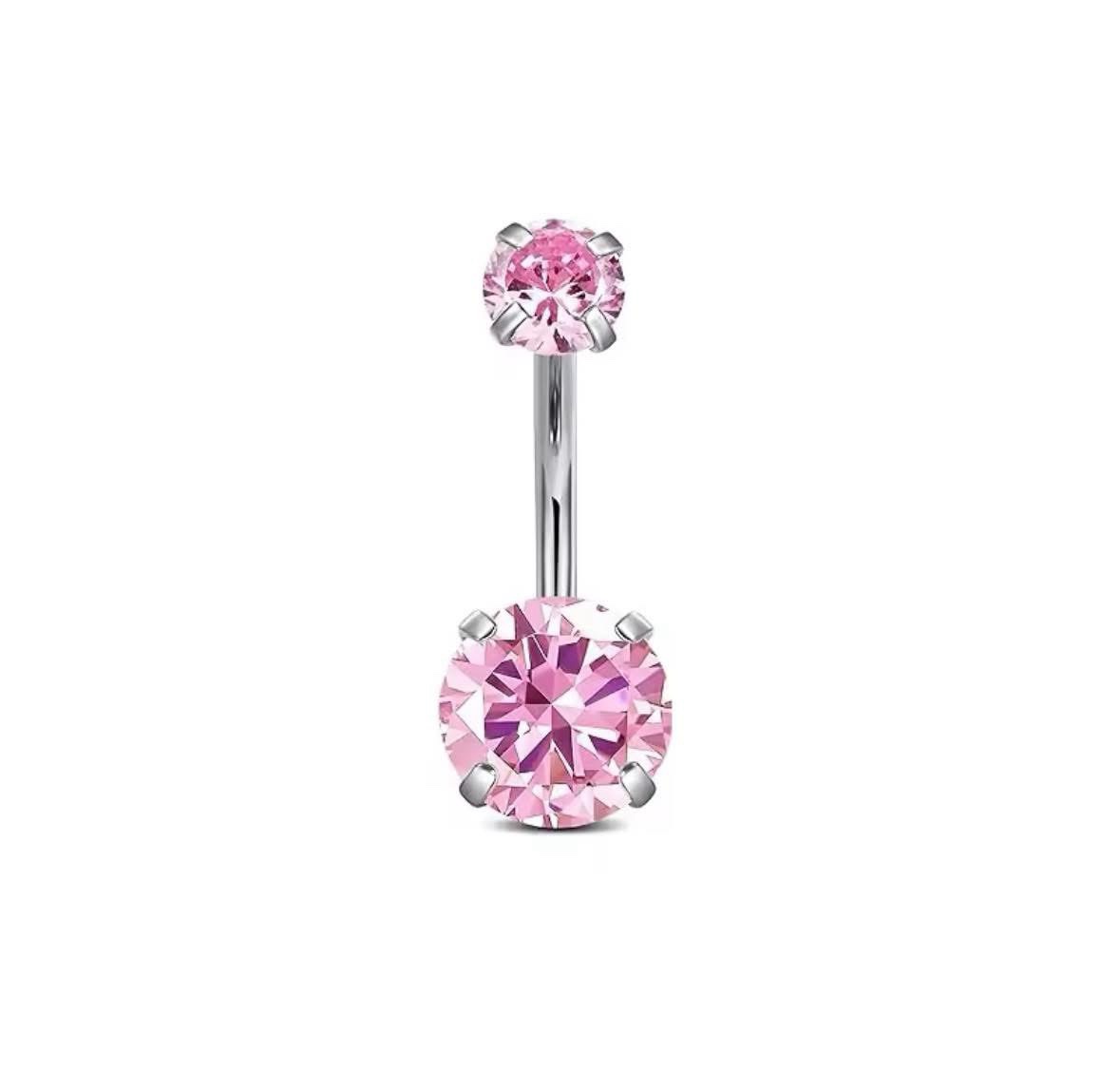 ჭიპის პირსინგი ვარდისფერი თვლით. დამზადებულია უჟანგავი ფოლადით , არ იწვევს ალერგიას .